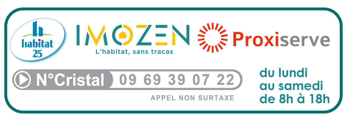 IMOZEN est un service de réparation et de dépannage de la plupart des équipements de votre appartement ou maison.Pour les réparations des équipements couverts par IMOZEN, une ligne téléphonique, exclusivement dédiée aux locataires d’Habitat 25, prend en charge les demandes d’intervention du lundi au samedi, de 7 h à 21 h. Au bout du fil, Proxiserve, entreprise spécialisée dans la maintenance et le dépannage, traite la demande des locataires d’Habitat 25.